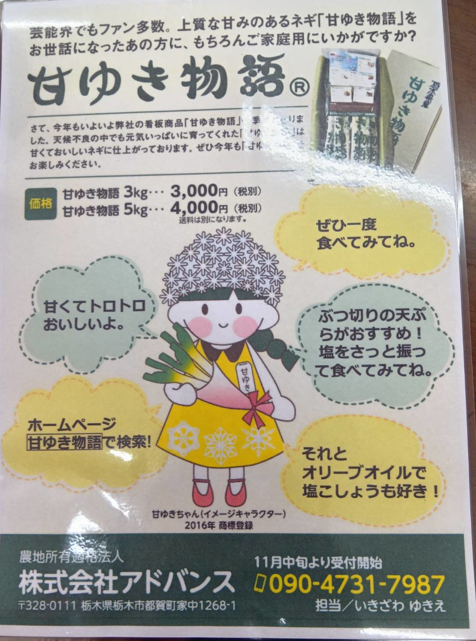 皆様においしいネギ「甘ゆき物語」をお届けしたいという想いから、